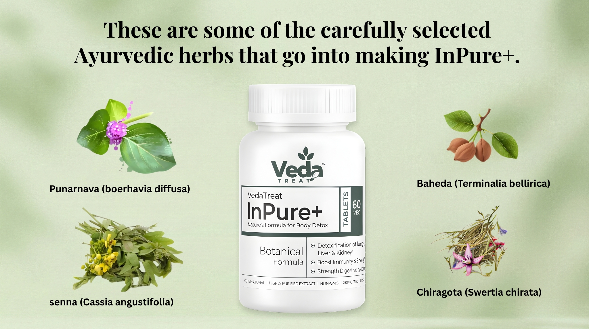 VedaTreat InPure+ is a carefully crafted herbal formula inspired by traditional Ayurvedic wisdom, designed to support the body’s natural cleansing and balance processes. It features a powerful blend of time-tested herbs including Amla, Punarnava, Kalmegh, Kutki, Harad, Beheda, Haldi, and Ginger, traditionally used to support digestive wellness, internal balance, and overall vitality.