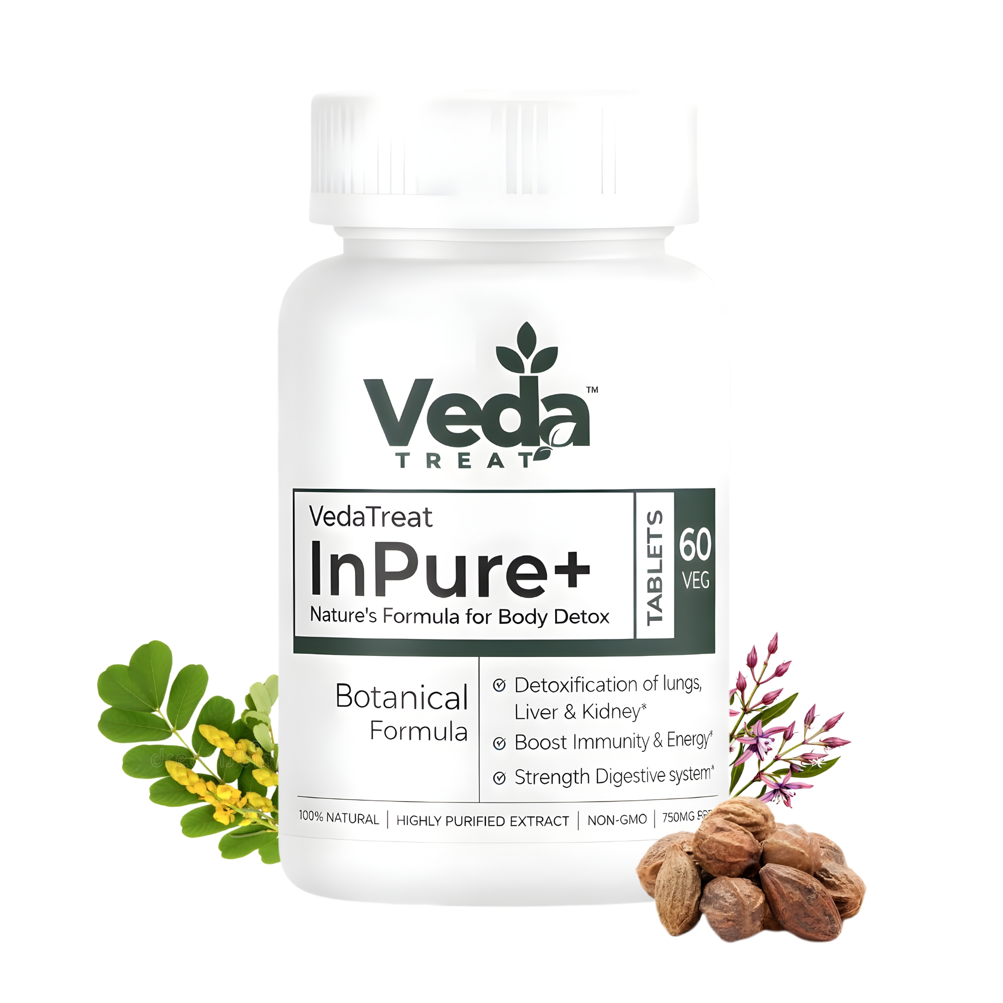 Manufactured in a GMP-certified facility, VedaTreat InPure+ is 100% vegetarian, Non-GMO, and Made in India, reflecting our commitment to clean ingredients, quality, and transparency.